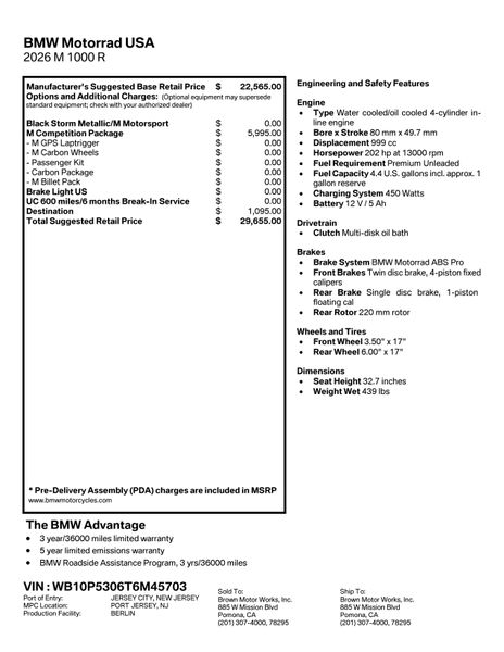 * BMW Motorrad Ultimate Care Break-In Service (“600 Mile Service”) is included with each new 2026 BMW motorcycle. Time and mileage limits apply (maximum 6 months from the In-Service date or maximum 750 miles, whichever comes first). See your authorized BMW Motorrad dealer for complete details and scheduling.