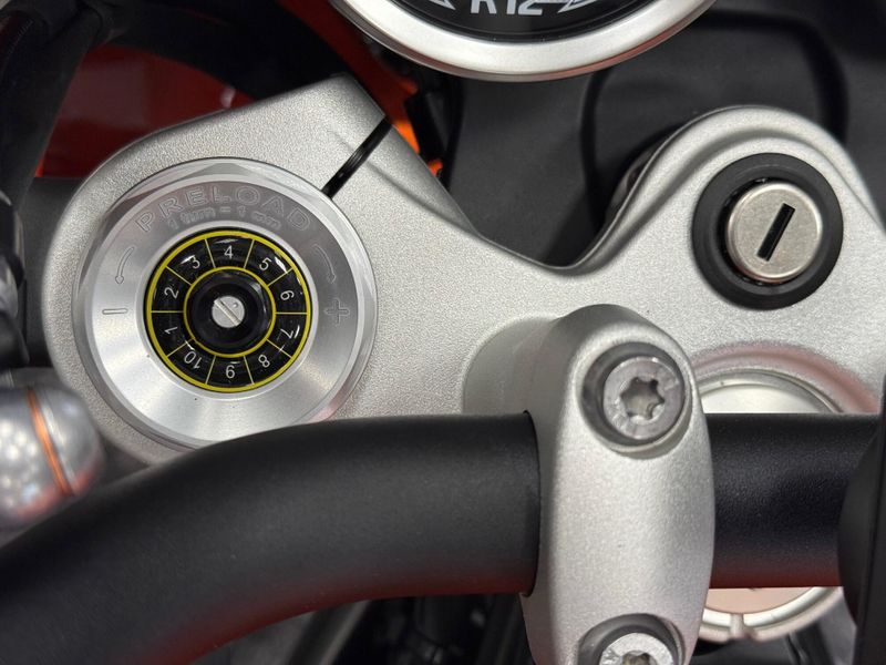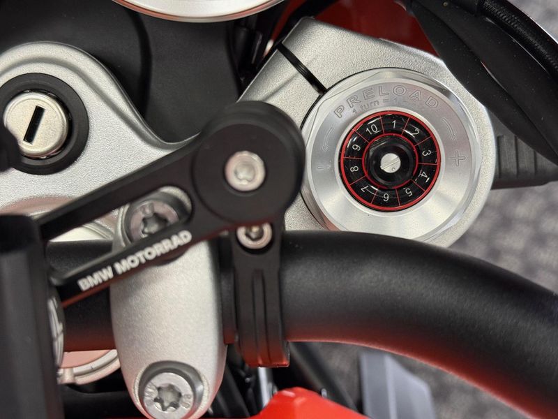 Rear wheel location / suspension: Cast aluminum single-sided swing arm with Paralever brace, central progressive spring strut, spring pre-load adjustable, rebound damping adjustable