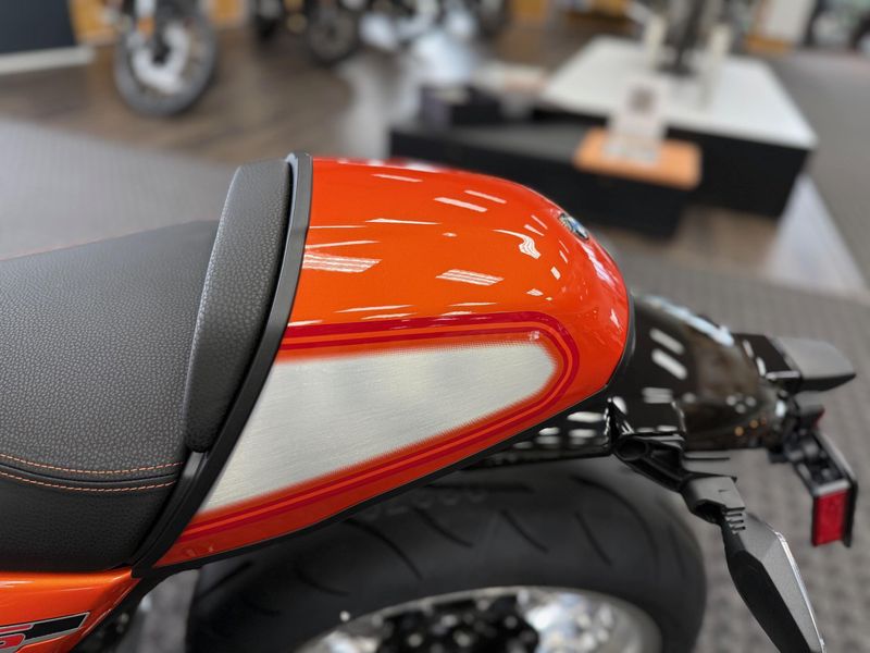 The form and details clearly reflect the design language of the 1970’s. Every detail expressed passion and exclusivity. With bright Lava Orange Metallic paint, the bike brings its unique style to the streets.
