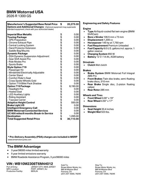 * BMW Motorrad Ultimate Care Break-In Service (“600 Mile Service”) is included with each new 2026 BMW motorcycle. Time and mileage limits apply (maximum 6 months from the In-Service date or maximum 750 miles, whichever comes first). See your authorized BMW Motorrad dealer for complete details and scheduling.